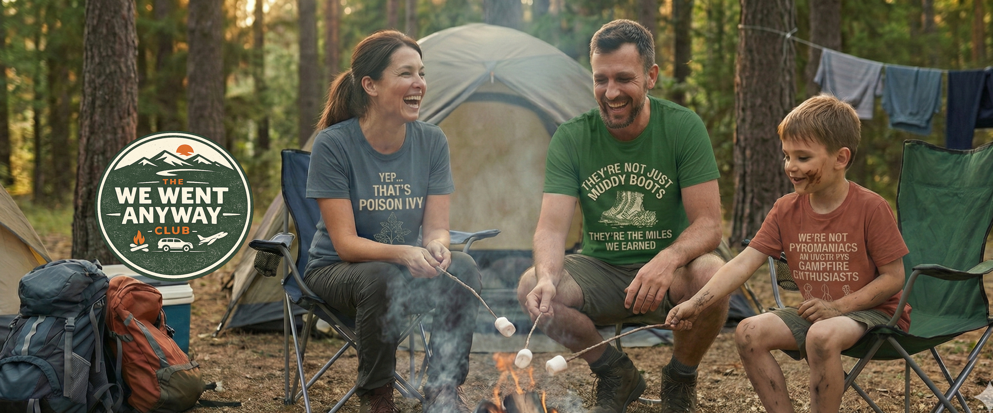 We use high-quality, comfortable materials that can handle whatever you throw at them—campfire smoke, kid hugs, that mysterious sticky substance from the cooler, even repeat washings after someone decided to "help" make s'mores.